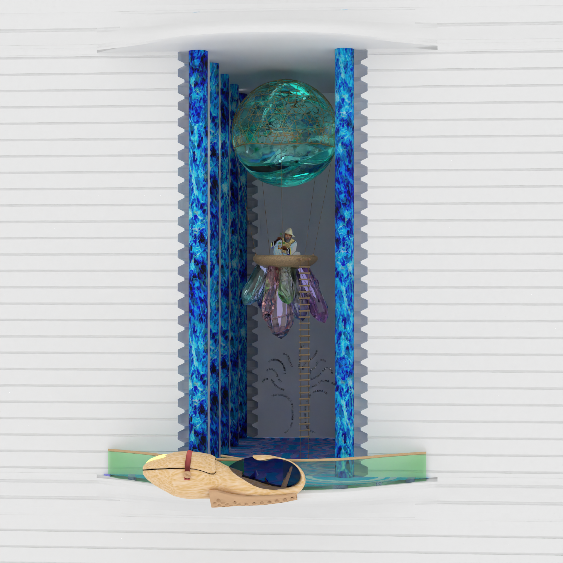 Je travaille souvent en mix media, mêlant aquarelle, peinture acrylique, modèles 3D, photographie et illustration vectorielle. Les textures sont généralement peintes à la main, puis numérisées, retravaillées et adaptées aux volumes 3D afin de s’intégrer naturellement à l’ensemble.